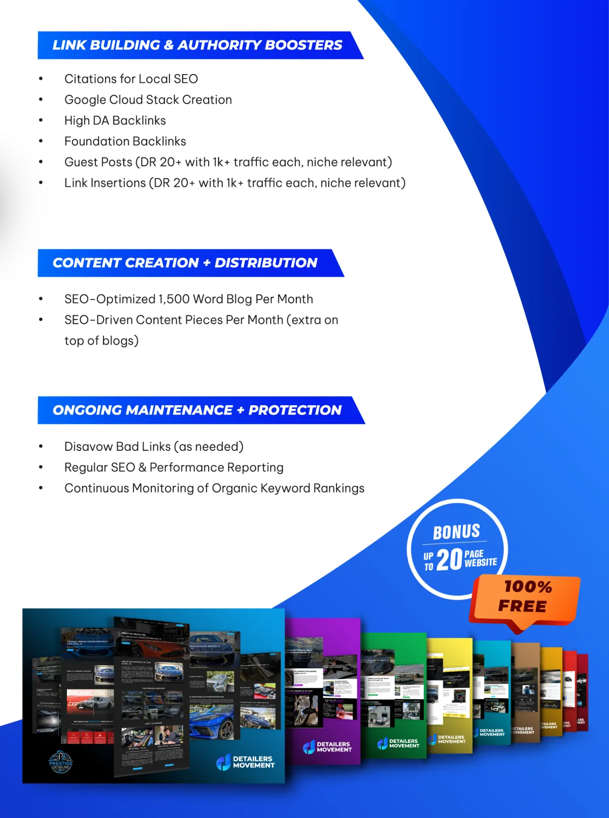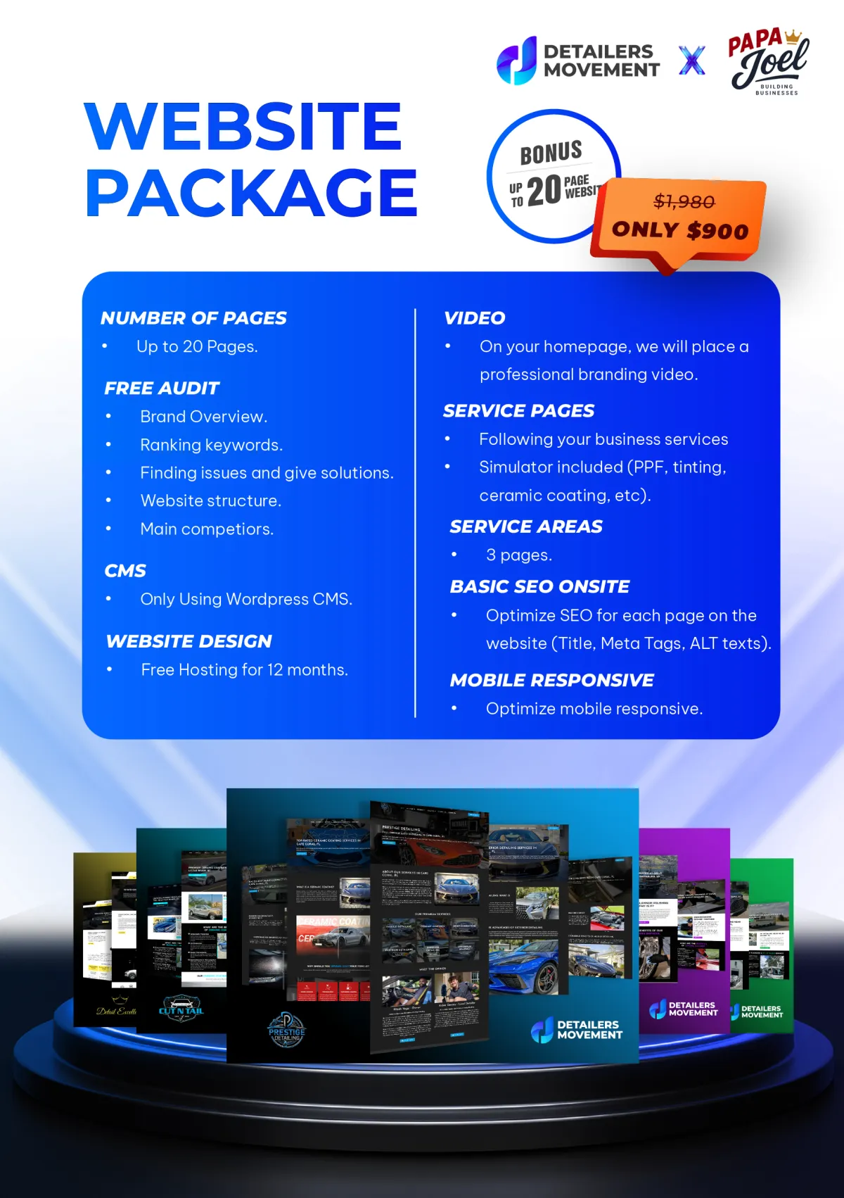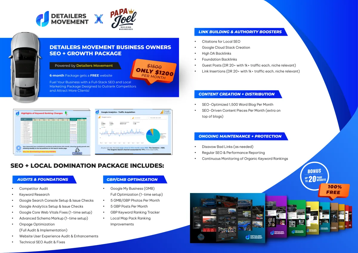Get a high-performing website built for detailers and film installers at an affordable monthly rate. No big upfront costs, just consistent value.